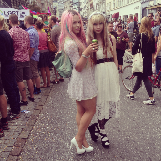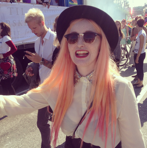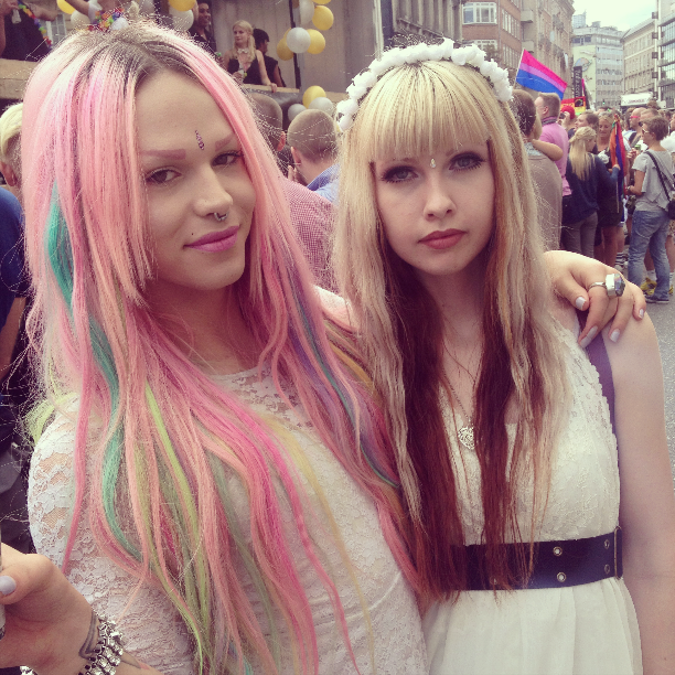 Gay parade on saturday was just like last year super fun and cheerful – so many wonderful people showed up and celebrated together. Sadly I forgot to eat breakfast (and lunch, and dinner) I got sort of drunk after two vodka drinks and a few beers, and from what I can remember we ate some pizza when we came back from the parade and later on we went to a nightclub but didn’t stay too long. I was basically drunk for 15 hours, so sunday was spent in bed feeling very sorry for myself. Luckily for me Lars made us yummy burgers and watched Harry Potter with me and that really helped! I might be getting a little bit ill though 🙁 My throat hurts, I have a headache and my skin feels more and more sore.. I am so not ready for a few days in bed – I have new hair to finish and things to do! Wish me luck guys haha.