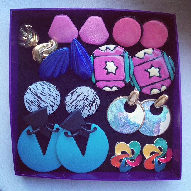 Remember my post about 80’s earring heaven? My earrings arrived on my doorstep today, they are all super pretty and different. I’m currently wearing the top pastel pink ones. I have to get ready soon though, if you watch my collaboration channel on Youtube you probably know that I have a cake to smack in my face today.